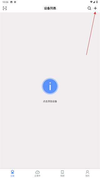 1、啟動巨峰眼APP,進入首頁點擊右上角+的功能按鈕。