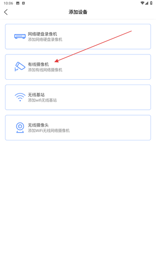 2、進入添加設備的界面內(nèi),選擇并點擊有線攝像機的按鈕。