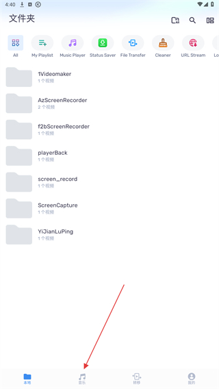 1、打開mx播放器APP,在首頁下方點(diǎn)擊音樂的功能按鈕。