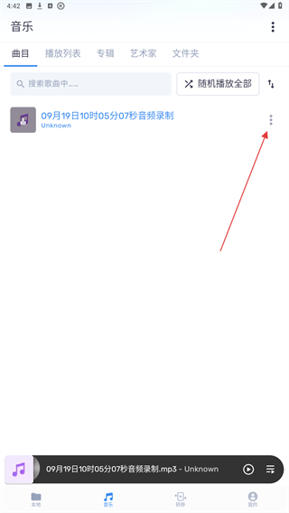 2、進(jìn)入音樂的頁面內(nèi),點(diǎn)擊音樂右側(cè)三個(gè)點(diǎn)的功能圖標(biāo)。