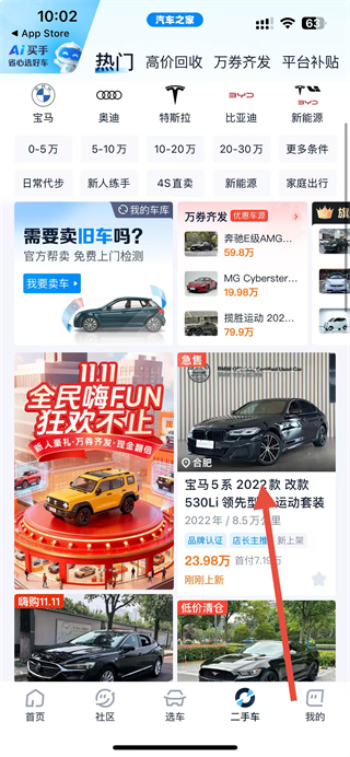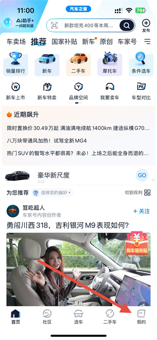 1、打開汽車之家app,點(diǎn)擊底部導(dǎo)航欄的我的選項(xiàng)進(jìn)入個(gè)人頁(yè)面。