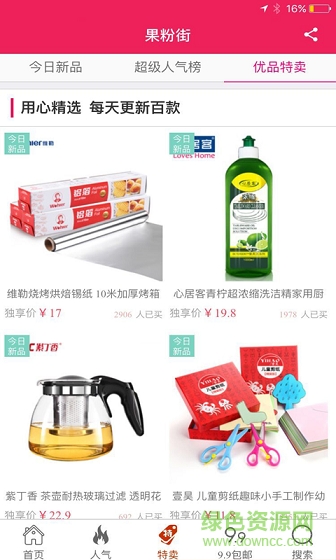 果粉街app是購(gòu)物平臺(tái),該平臺(tái)專注于滿足消費(fèi)者的真實(shí)需求,以低價(jià)、高品質(zhì)的產(chǎn)品為核心,有超多商品,巨劃算的價(jià)格,隨意選購(gòu)自己喜歡的商品,一鍵分享給朋友還有優(yōu)惠折扣哦,剁手黨必備神器,分享實(shí)惠,購(gòu)得便宜,有興趣的用戶歡迎來(lái)綠色資源網(wǎng)下載!