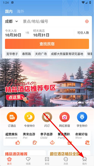 1、在木鳥民宿app首頁(yè)點(diǎn)擊我的選項(xiàng),進(jìn)入個(gè)人頁(yè)面。