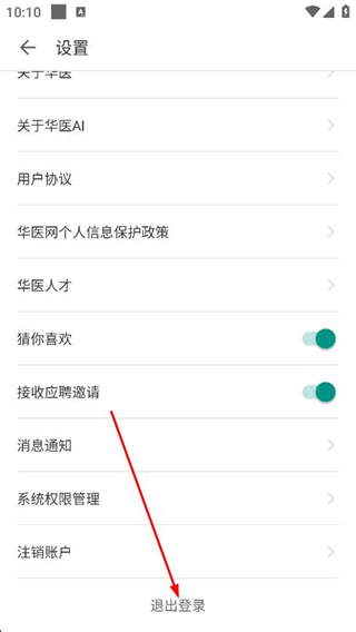 3、在設(shè)置頁面點擊退出登錄選項,即可完成退出登錄操作。
