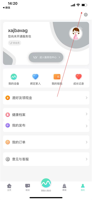 2、在我的頁面點(diǎn)擊右上角的設(shè)置圖標(biāo),進(jìn)入設(shè)置與幫助頁面。