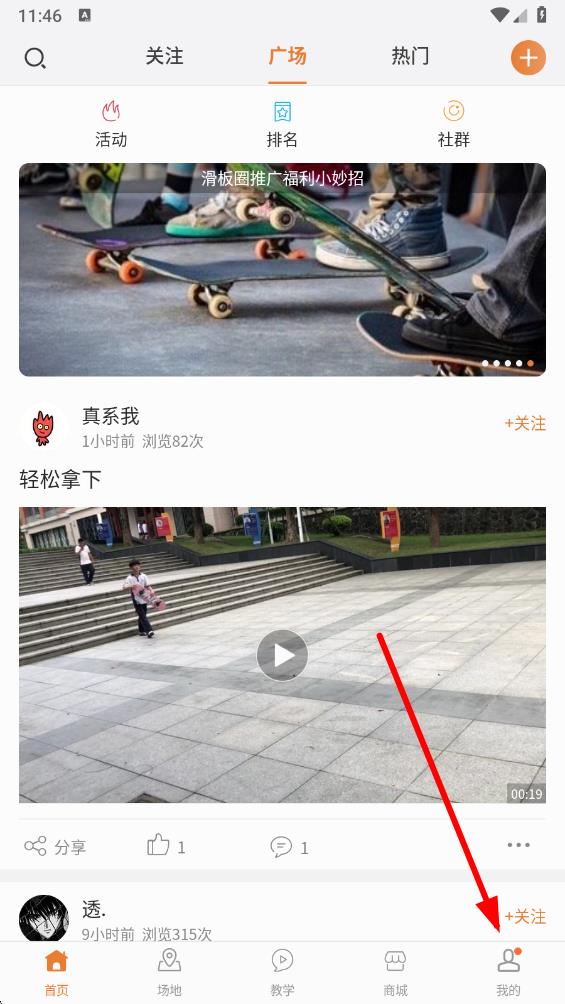 1、打開滑板圈app,點擊底部導(dǎo)航欄最右側(cè)的我的,進(jìn)入個人頁面。