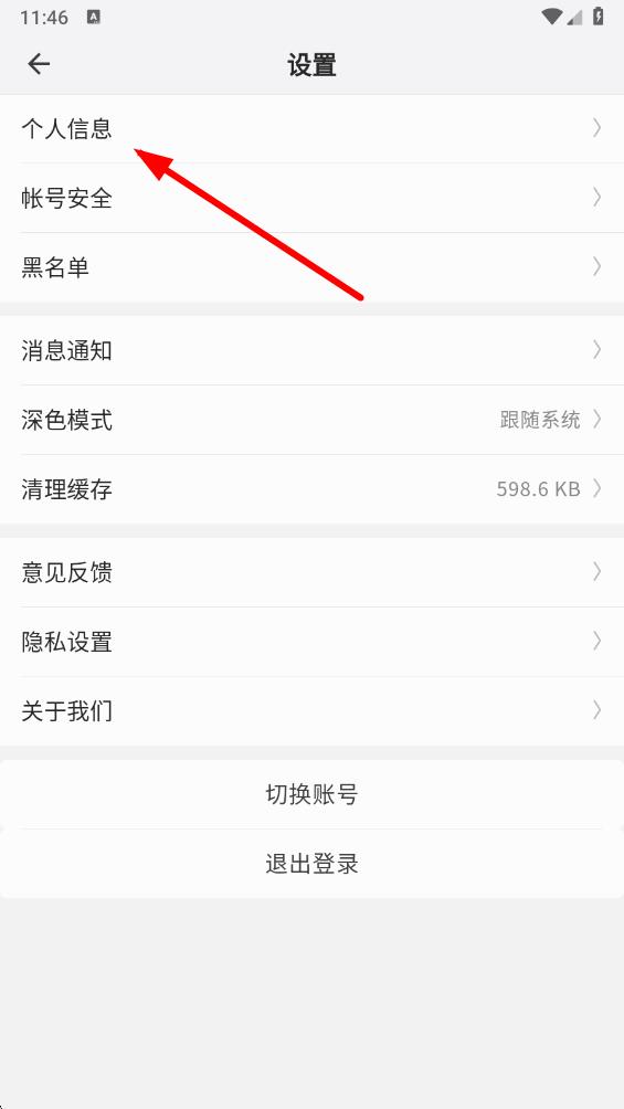 3、在設(shè)置界面里,點擊個人信息,進(jìn)入個人信息編輯頁面。