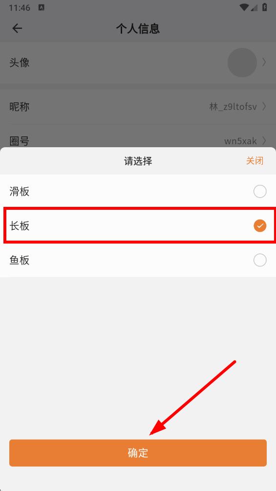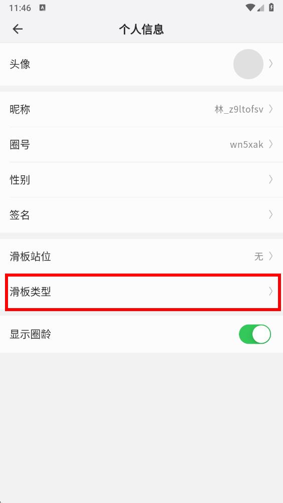 4、在個人信息頁面中,點擊滑板類型,進(jìn)入選擇滑板類型。