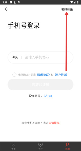 2、登錄界面點(diǎn)擊右上角“密碼登錄”,切換至密碼登錄方式。