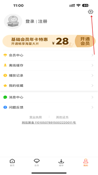 2、進(jìn)入個人中心的界面內(nèi),點(diǎn)擊右上角設(shè)置的功能按鈕。