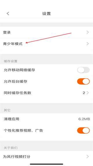 3、進(jìn)入設(shè)置的頁面內(nèi),點(diǎn)擊登錄下青少年模式的功能按鈕。