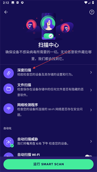 3、在掃描中心頁面,點擊深度掃描選項,啟動深度掃描流程。