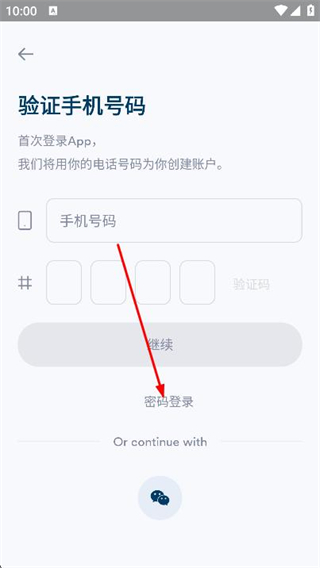 3、在驗證手機號碼頁面,點擊下方的密碼登錄選項。