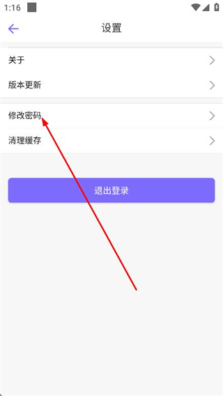 3、在設(shè)置頁面,點(diǎn)擊修改密碼選項(xiàng),進(jìn)入修改密碼頁面。
