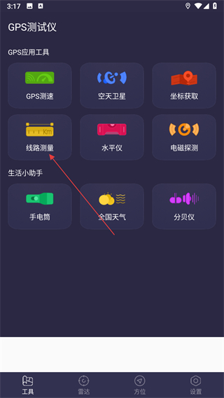 1、打開GPS測(cè)試儀應(yīng)用,點(diǎn)擊線路測(cè)量選項(xiàng)。