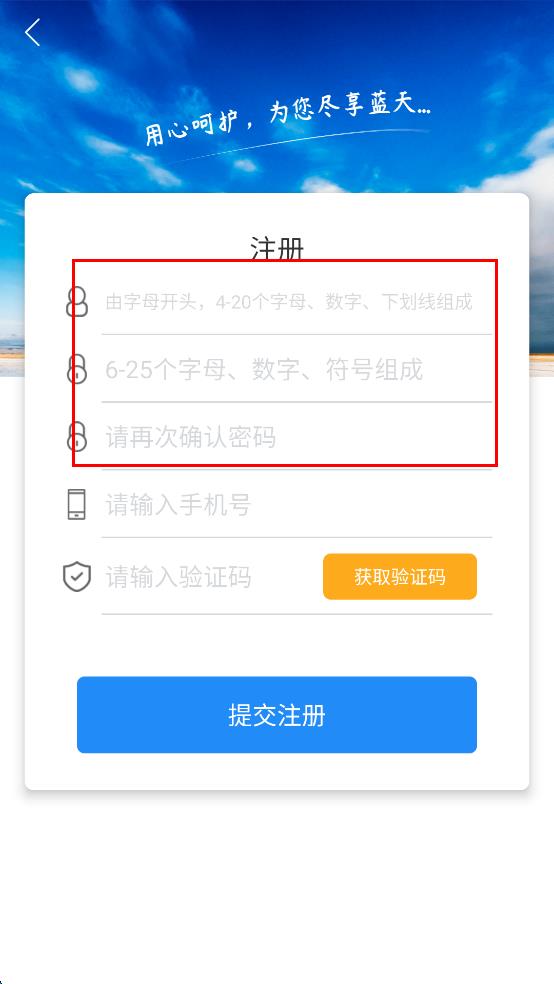 3、進(jìn)入到注冊頁面后輸入相關(guān)信息,設(shè)置密碼。