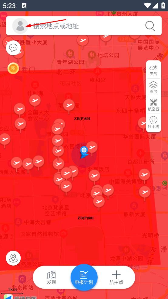 1、打開某航拍類APP,進(jìn)入首頁后,點(diǎn)擊頁面左上角個(gè)人頭像圖標(biāo)。