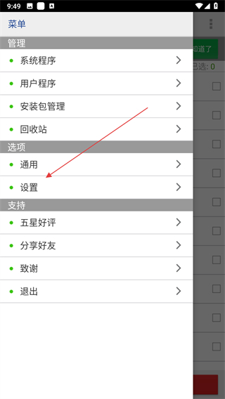 2、在彈出的側(cè)邊菜單中,找到設(shè)置選項并點擊,進(jìn)入應(yīng)用的設(shè)置頁面。