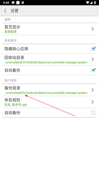 3、在設(shè)置頁面里,找到用戶程序板塊下的備份目錄選項,點擊該選項進(jìn)入。