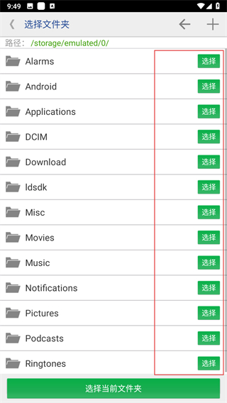 4、進(jìn)入之后,找到自己需要的文件夾,點擊后面的選擇即可更換成功。