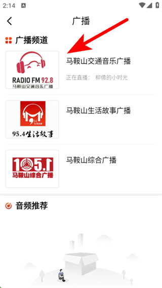 3、在廣播的頁(yè)面,需要選擇想要收聽(tīng)的廣播頻道,點(diǎn)擊進(jìn)入。