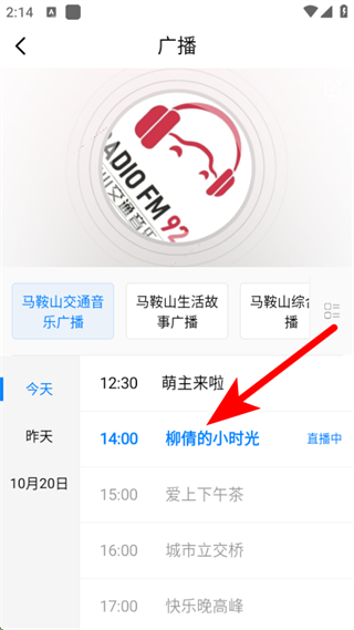 4、進(jìn)入廣播頻道后,可查看節(jié)目單,選擇正在直播的節(jié)目進(jìn)行收聽(tīng)。