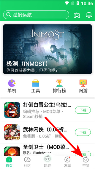 1、在葫蘆俠首頁,點擊右下角空間選項,進入個人空間頁面。