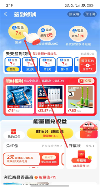 4、點擊“簽到”按鈕,完成簽到領(lǐng)現(xiàn)金操作。
