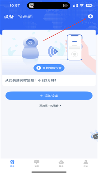 2、在展示出的菜單欄中,找到并點(diǎn)擊添加設(shè)備的按鈕。