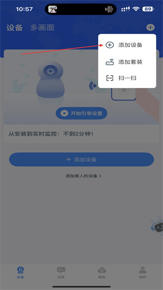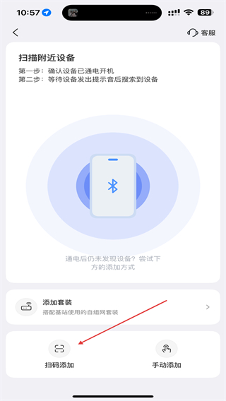 3、進(jìn)入添加設(shè)備的頁(yè)面內(nèi),點(diǎn)擊下方掃碼添加的按鈕。