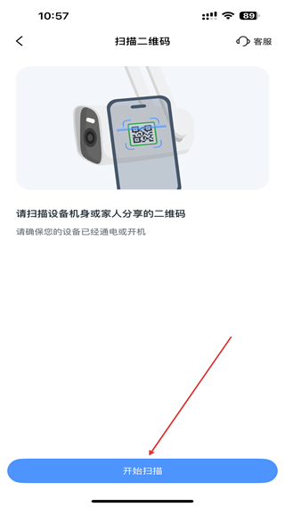 4、進(jìn)入掃描二維碼的界面內(nèi),點(diǎn)擊下方開始掃描的按鈕即可。
