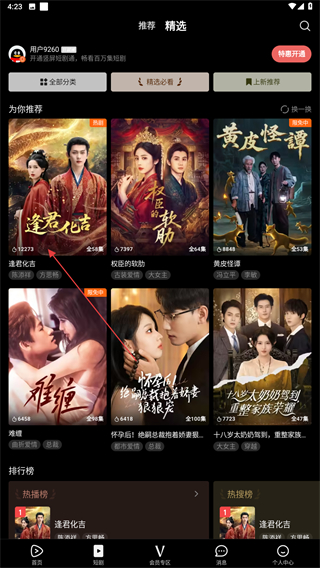 2、進(jìn)入短劇精選的頁(yè)面內(nèi),選擇并點(diǎn)擊要看的短劇內(nèi)容。