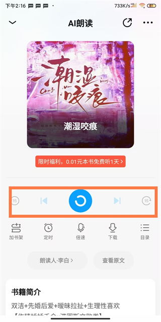 2、在書(shū)籍詳情頁(yè)面,點(diǎn)擊聽(tīng)書(shū)按鈕,進(jìn)入AI朗讀頁(yè)面。