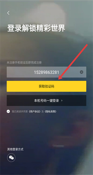 3、在進(jìn)入到登錄頁面中輸入手機(jī)號(hào)碼后,點(diǎn)擊“獲取驗(yàn)證碼”。