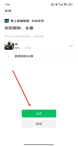 3、在微信授權(quán)彈窗中點(diǎn)擊“允許”,授權(quán)掌上英雄聯(lián)盟使用昵稱和頭像進(jìn)行登錄。