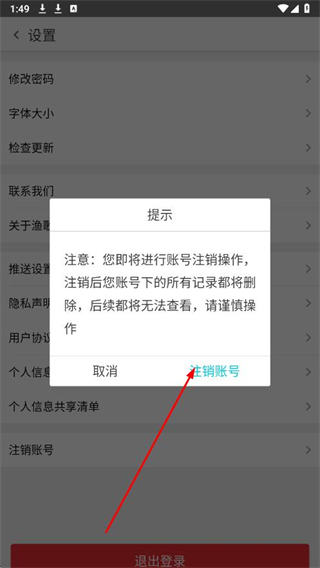 4、在彈出的提示框中,點(diǎn)擊注銷(xiāo)賬號(hào),完成賬號(hào)注銷(xiāo)操作。