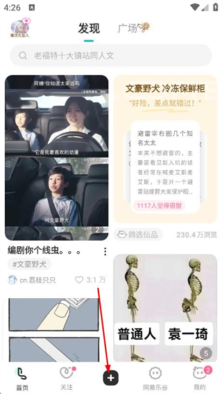 1、打開老福特應(yīng)用,在底部導航欄中點擊中間的加號按鈕,進入發(fā)布內(nèi)容的界面。