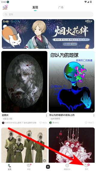 1、打開LOFTERAPP進入發(fā)現(xiàn)頁面,點擊我的進入個人中心。