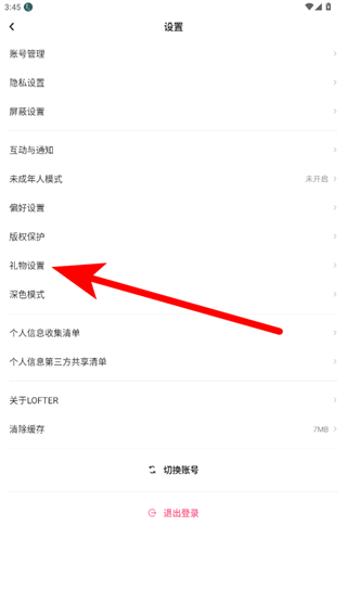 3、在設(shè)置界面點擊禮物設(shè)置選項,可進入禮物設(shè)置頁面。
