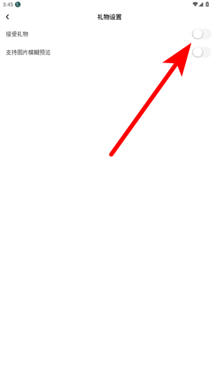 4、在禮物設(shè)置頁面,點擊接受禮物右側(cè)的開關(guān)按鈕,即可開啟接受禮物功能。