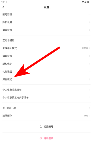 3、在設(shè)置頁面點擊深色模式,進入深色模式設(shè)置頁面。
