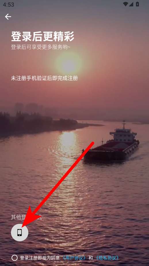 3、在登錄選擇頁面,點(diǎn)擊手機(jī)號登錄圖標(biāo),進(jìn)入手機(jī)號登錄界面。