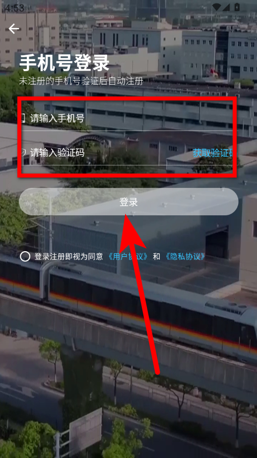 4、在手機(jī)號登錄界面,輸入手機(jī)號和驗(yàn)證碼后點(diǎn)擊登錄按鈕,即可完成登錄操作。