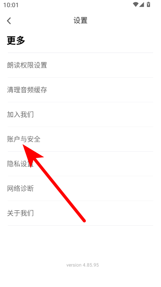 3、在設(shè)置頁面,點(diǎn)擊賬戶與安全選項(xiàng),進(jìn)入個(gè)人信息界面。