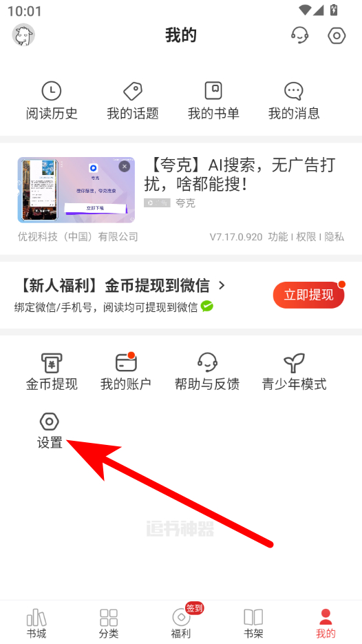 2、在個(gè)人中心頁面,點(diǎn)擊設(shè)置選項(xiàng),進(jìn)入設(shè)置頁面。