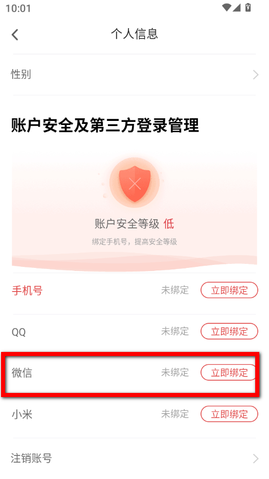 4、在個(gè)人信息界面,找到微信綁定區(qū)域,點(diǎn)擊立即綁定,即可完成微信綁定操作。