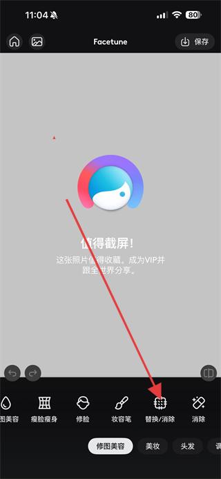 3、進入編輯界面后,點擊下方工具欄中的替換/消除工具,準備進行去除人物操作。