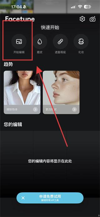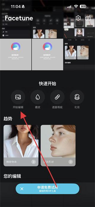 1、打開Facetune應用,在主界面點擊開始編輯,進入選擇圖片的流程。