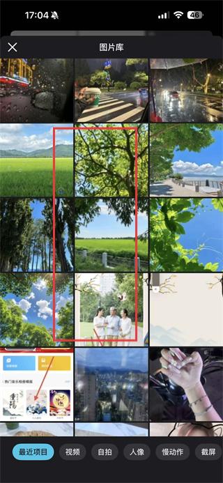 2、在圖片庫中,挑選一張需要修圖的照片并點擊導入。