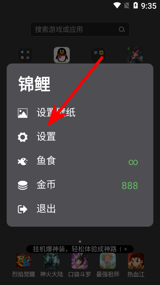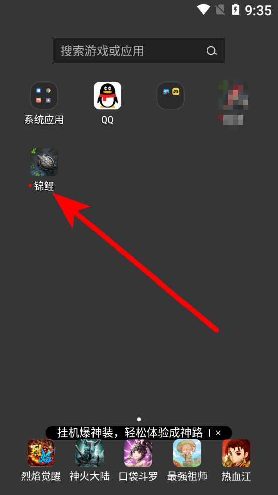 1、在應用列表頁面,點擊錦鯉APP圖標,彈出功能菜單。